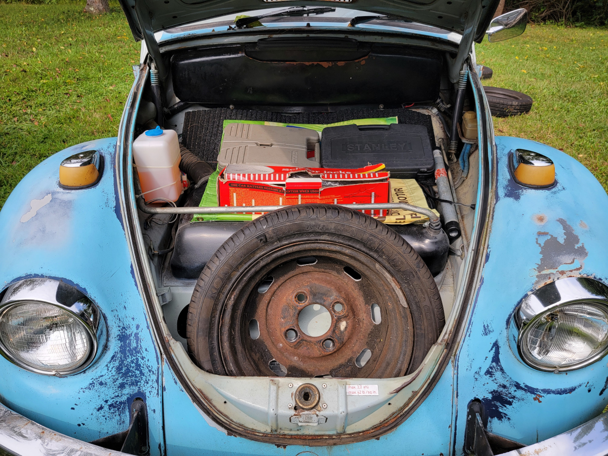 I’m going to have the new rubber put on the Empi wheels and roll with those skates on for a while. I had purchased a tire to use as a spare, which is now on an Empi wheel in the frunk. That will need to be swapped over onto one of the steelies, too.