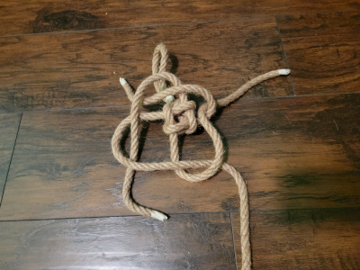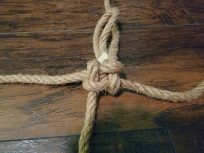 Pull them tight gradually in diagonal pairs (south/east and north/west). The first knot rarely ever looks like a clean square.