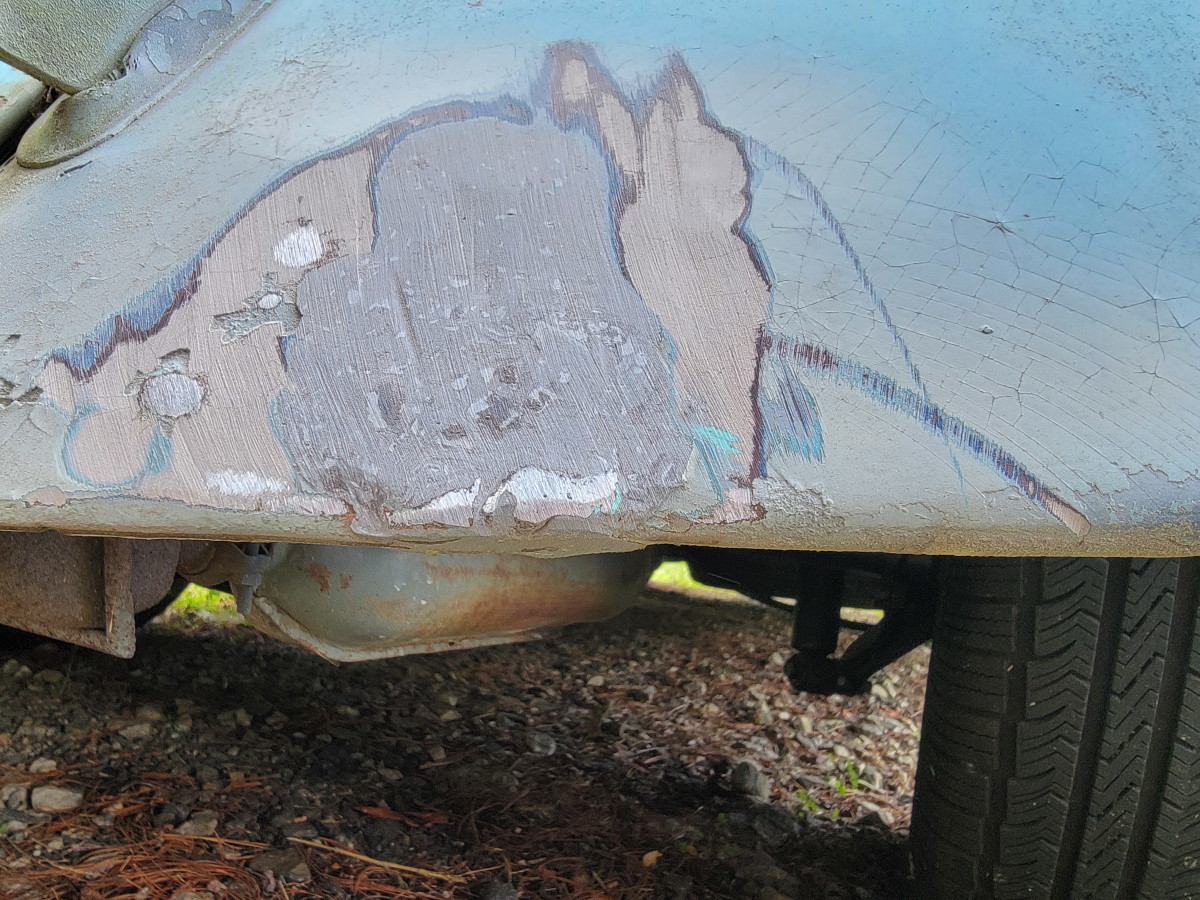 They are still wayyyy too thick, especially on the passenger’s side rear. I will have to eventually go back with an electric sander to get that the rest of the way down. For the time being, it’s better than it was, being untreated rusty metal exposed.