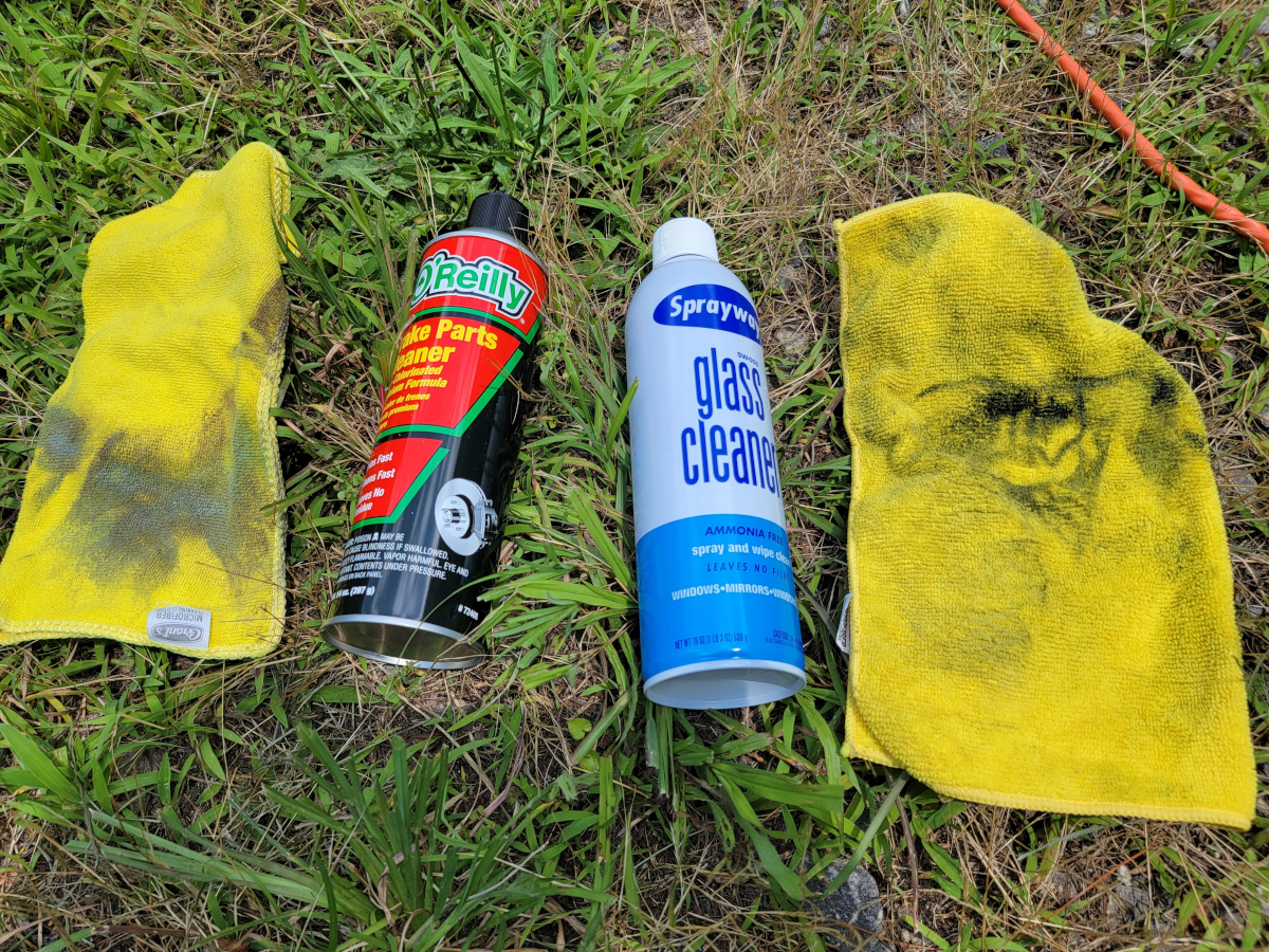 I cleaned off the affected areas with brake parts cleaner, then Sprayway glass cleaner.