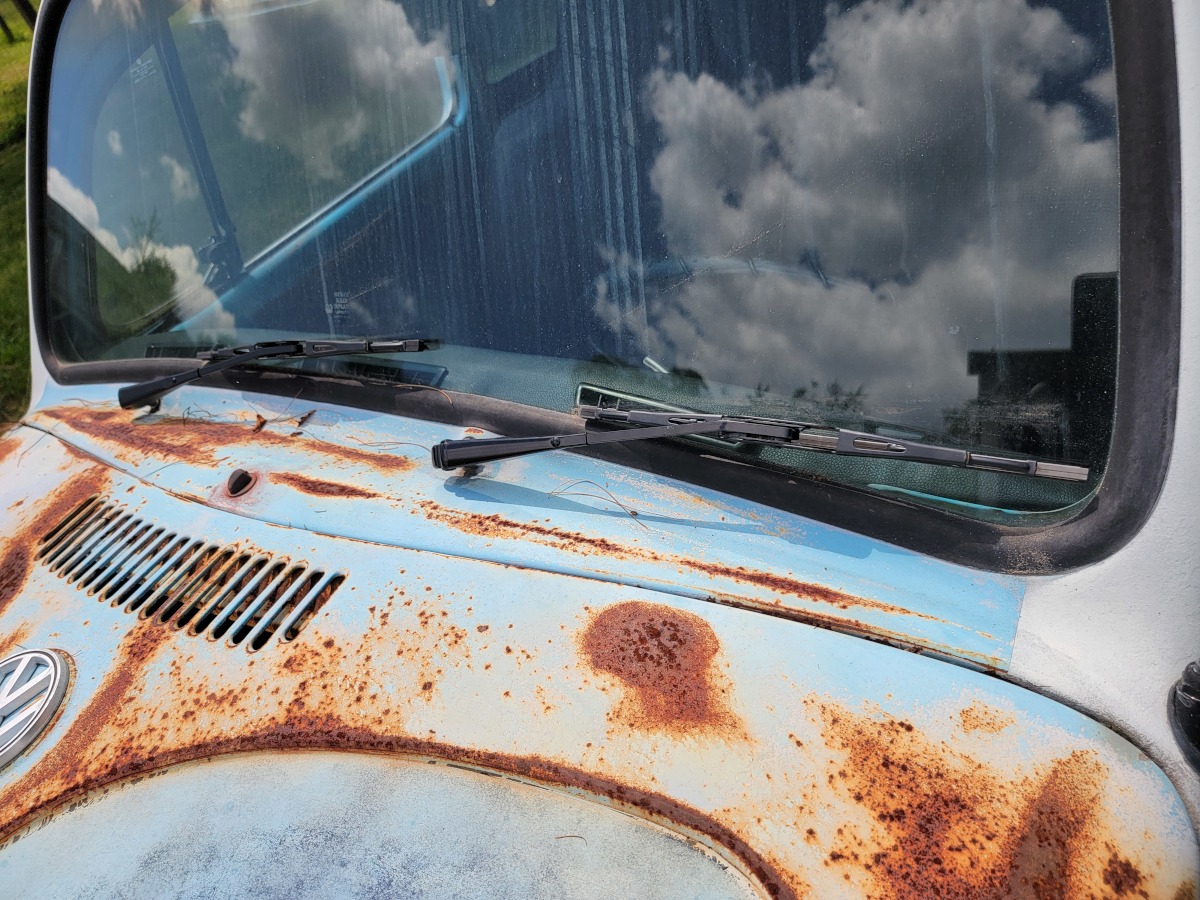 That’s not going to be enough to do the whole car, but I only got started painting this because of the rust pitting. Following that logic, I should finish the space below the windshield and then do the front trunk lid. Those are the next most rusty places.